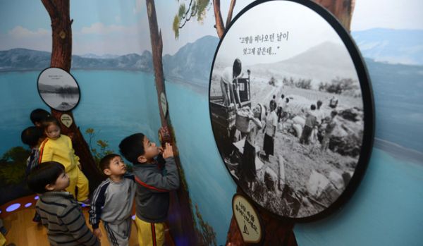 특히 진양호 풍경이 그려진 전시실 안에 실향민들의 흑백 사진을 볼 수 있고 나무그림이 그려진 나무테 속 작은 구멍안을 들여다보면 수몰되었던 마을의 옛모습이 눈 앞에 펼쳐진다.