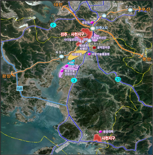 진주·사천 중추기능 강화를 위한 주요 전략사업으로는 ▲항공국가산업단지 조성 ▲혁신도시 건설 ▲진주부흥프로젝트 ▲사천공항 활성화 ▲남부내륙철도 건설 등이 꼽히고 있다.