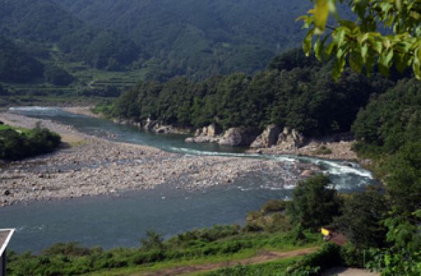 이곳에서 세동(송전)마을 방향으로 강을 따라 용유담의 전설과 함께하는 ‘둘레길 전설탐방로’가 시작된다. 도로를 이용해도 되지만 둘레길은 강가로 아주 가까이 다가간다.