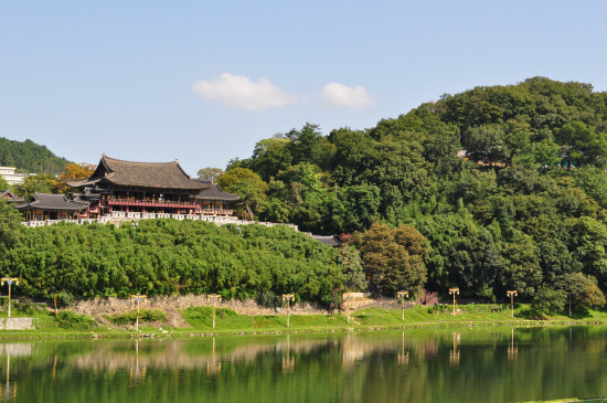 활엽수의 나뭇잎이 아슴푸레하게 가을의 빛깔로 물들어오는 아침, 산자락을 끼고 도는 강물 위로 자욱한 안개가 한낮의 쾌청을 귀띔하기에 홀가분한 차림으로 집을 나섰다. 문산 IC에서 10번 고속도로를 타고 한달음에 달려서 동창원 요금소를 나와 황금색으로 물든 드넓은 들녘을 헤집고 밀양으로 향했다. 낙동강을 가로지른 수산대교를 시원스럽게 건너서 밀양대로를 따라 밀주교를 지나 밀양강을 다시 건너 남천교 들머리의 한적한 골목에 차를 세우고 강둑길로 올라섰다. 빤히 건너다보이는 영남루는 무봉산 자락의 벼랑 위에서 남천강 강물 위에 그림자를 드리우고, 대숲을 헤집고 강섶으로 내려앉은 아랑각을 굽어보는 추강누각(秋江樓閣)은 가을 하늘과 어우러져 한 폭의 그림이다.