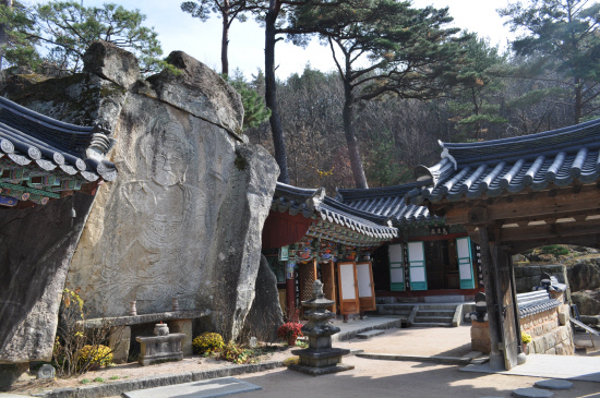 어린 시절에야 고무신짝 냅다 벗어던지면 족집게였었는데 내비게이션이 나오고부터는 고무신짝도 오작동만 할 것이고 얼핏 들은 소리가 기억나서 ‘서운암’ 이라는 안내판을 따랐다. 작은 모롱이를 돌아드니 바로 코앞이다. 주차장에 차를 세우니 이게 어찌된 일인가, 고색창연한 천년고찰이 고즈넉하게 앉았거니 했었는데 아름드리 장독들이 가로세로 줄을 지어 초겨울 햇볕 아래 끝도 없이 늘어서서 물결에 반사되는 햇빛같이 반짝인다. ‘서운암 된장’ 판매소에는 주문을 하느라고 아낙들이 줄을 섰고 건너편의 2층으로 삼천불전에 들어서면 삼천석좌불이 줄을 지어 끝이 없다. 삼삼은 구인데 구천 배를 줄여서 삼배로 가름하고 왔던 길을 돌아서서 바위구멍에 금개구리가 산다는 ‘자장암’으로 차를 몰았다.