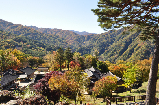 고산준봉 골골이 오색단풍 영롱하고 자연조화의 절묘한 풍경 속으로 빨려들듯이 비탈진 산길을 굽이돌아 벽송사 주차장에 닿았다.