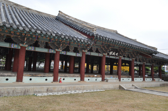 35번 대전·통영 간 고속도로 종점인 통영 요금소를 나오면 거제로 이어지는 왕복 4차선도로는 고속도로 못지않게 시원스럽게 달릴 수 있어 초겨울의 상큼한 바닷바람을 헤집고 게제대교를 단숨에 지나 사곡삼거리에서 우회전을 하여 이내 거제면사무소 앞에 닿았다. 느티나무 고목아래서 예스러운 솟을대문이 한 눈에 들어온다. 면사무소 마당에 차를 세우고 솟을대문으로 들어섰다. 널따란 마당 끝을 길게 가로 막은 원형의 주홍 기둥이 빼곡히 받힌 솟을지붕의 위용에 놀라서 얼른 다가가지 못하고 대문간에서 발길을 멈췄다. 문화유적을 탐방하다보면 어느 한쪽에 감동을 받으면 거기에만 치우쳐서 전체를 못 보는 실수를 수 없이 거쳤으니 웬만해서는 빠뜨리지 않지만 그래도 천천히, 차분하게, 더는 없는가를 습관적으로 되뇌면서 샅샅이 훑어본다. 마당 왼편으로 비석들이 늘어섰다. 세월의 무게에 녹이 쓴 철 비석과 마모가 심하여 판독조차 어려운 석비들이다. 관찰사, 삼도수군통제사, 암행어사, 현령, 부사 등의 송덕비이다. 요즘으로 치면 뇌물 받아 축재하기 딱 좋은 직위인데 보국애민의 숭고함을 기리는 송덕비다. 고개를 숙여 예를 가름하고 우리는 지금 누구의 송덕비를 세울 수 있을까를 생각하니 입맛이 쓰고 어지럽다. 혼란스런 상념을 털고 기성관이라는 편액 밑으로 다가 섰다. 정면 9칸 측면 3칸으로 가운데 아홉 칸은 두 칸 너비로 폭을 넓혔고 솟을지붕의 3칸의 기둥은 이중의 대들보를 높이 올려 안에서 바라보는 천정의 웅장함과 40개의 기둥이 솟은 마루청의 광대함은 과히 위압적이라 한순간에 압도된다. 이중 서까래를 받힌 팔작지붕으로 3등분의 중앙은 솟을지붕이니 그 크기는 웅장하고 장엄하여 과연 통영의 세병관, 진주의 촉석루, 밀양의 영남루와 함께 경남의 4대 목조건축물의 하나이다. 기성은 거제의 옛 이름으로 기성관은 거제관아로서 1422년 세종4년에 고현에 건립하여 이후 성종원년에는 옥포, 조라, 가배, 영등, 장목, 지세포, 율포 등 거제부 7진의 통할영인 군영의 본부였으나 임진왜란으로 고현성이 함락됨에 따라 현종5년에 성을 폐쇄하고 거제면인 현 위치로 옮겼다.