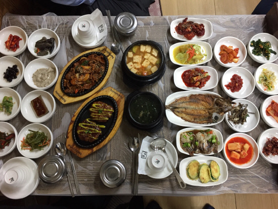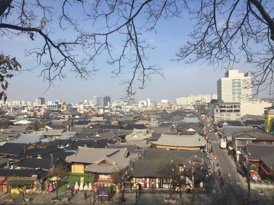 시내투어에서 차량으로 이동하면 주차하기가 불편하여, 서울 부산 대구 창원 진주 순천 등에서 모인 친구들과 밝은 날 먼저 호텔 체크인을 해놓고 전주한옥마을을 가로질러 한울밥상으로 간다. 어둠이 밀려오는 경기전 돌담골목을 지나 그간의 얘기로 추위를 녹이며 식당에 들어서니 푸짐하게 차려진 상이 우리를 기다린다. 흰밥에 국과 찌개, 떡갈비, 제육볶음, 게장, 고등어자반 등 다양한 찬을 곁들인 소박한 한정식으로 전주사람들이 과거 무엇을 먹고 살았을까를 보여주는 느낌이다. 사대문을 중심으로 전주 토박이들이 즐겨 먹었던 전통음식에 유명한 모주까지 곁들이며 깊은 맛을 나누고 야경투어에 나섰다.