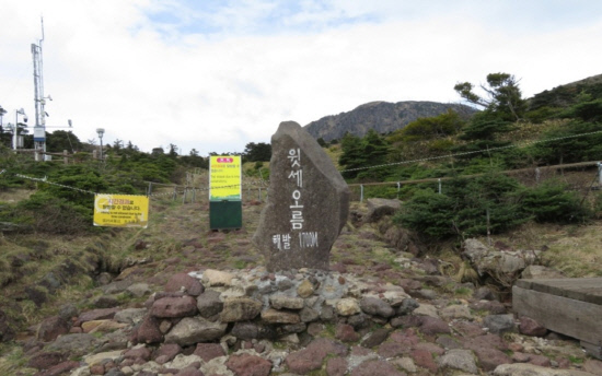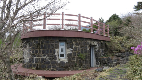 오전 8시 10분, 산행들머리인 서귀포시 충혼묘지 앞을 출발하려는데, 비와 함께 바람도 거세게 몰아쳤지만 산행을 통제한다는 예보가 없으니, 함께한 사람들은 스스로를 잘 추스려 열심히 걷기 시작한다. 제법 긴 시간 산행을 해야 하기에 천천히 걸으니 편안하여 좋았고, 힘들어하는 사람이 있으면 조금씩 도와주면서 우뚝 솟은 정상을 향하여 습지 중 하나인 썩은물통, 두부를 닮았다는 둔비바위를 지나, 바위 그늘집 같은 평평하고 큰 바위에 현무암을 이어 붙여 만든 이색대피소인 평궤대피소(1,450m)에 도착하여, 잠시 편안한 휴식을 취하니 드디어 주변이 좀 보이기 시작한다.