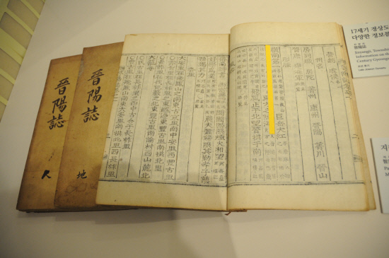 ▲ 17세기 경상도 진주목의 다양한 정보를 기록한 읍지. 현재 국립진주박물관에 전시