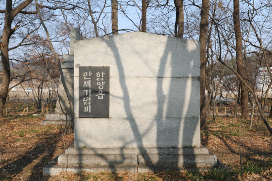 함양군 운림리 상림공원에는 위와 같은 비문을 담은 함양읍 만세 기념비가 서 있다. 높이 2.3m, 둘레 2.5m, 폭 0.5m의 규모의 이 기념비는 1985년 12월에 건립됐는데 100년 전 함양지역에서의 뜨거웠던 만세의거의 흔적을 고스란히 담고 있다.