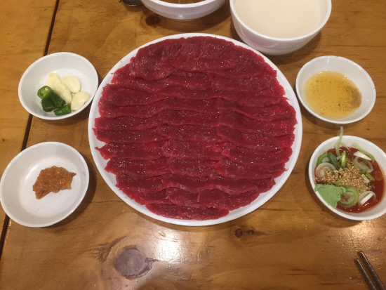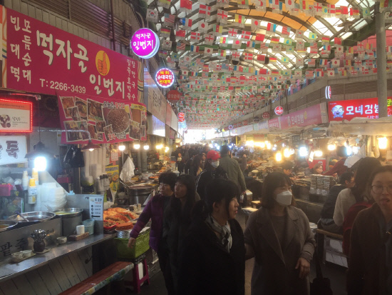 요즘과 같이 연일 미세먼지 나쁨이라는 예보와 가시거리가 수 백 미터도 안 되는 날씨 속에서는 한양 나들이는 엄두도 못 내지만, 긴 세월을 이세 교육에 전념하다가 건강하게 자유인이 된 친구들을 축하해야겠다는 마음을 먹으니 날씨쯤은 문제될 것이 없어, 세상 사람들의 사는 모습을 가장 편하게 보며 즐길 수 있는 종로5가역 앞의 광장시장에서 만나, 다양한 먹거리들을 즐기며 평소와는 좀 다르게 여유로운 저녁시간을 만들어 보기로 했다.