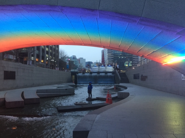 잘 다듬어진 청계천을 따라 걸으며 새벽다리와 전자상가를 지나고, 주변의 건물들을 둘러보며 평화롭게 노니는 다정하고 아름다운 청둥오리의 모습까지 보다가, 동아일보 앞 광장에서 펼쳐지는 3·1절 100주년 기념 민족평화신명천지축전을 비롯하여 광화문 광장에서 장엄하게 펼쳐질 삼일절 기념행사 준비하는 모습까지 구경하고, 광화문과 국립고궁박물관 앞을 지나 세종마을음식문화거리로 들어섰다.