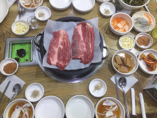 33번국도, 광주대구고속도로, 중앙고속도로를 이어달려 의성에서 처음으로 찾은 곳은 의성마늘김동준한우다. 일주일에 2번 도축을 하여 가장 신선한 재료로 건강한 음식을 만들어 낸다는 김동준한우에서, 숯불이 아닌 돌판에 기름종이를 깔고 등심, 갈비살, 안창살 등 의 고기를 구워 먹으니, 불판 갈 걱정 없이 최고의 쇠고기를 깔끔하고 고소하게 즐길 수 있어, 함께한 친구들 모두 대만족이다. 육회도 유명하다는데 오늘은 맛볼 수 없어 아쉬웠지만, 된장찌개 또한 최고다.