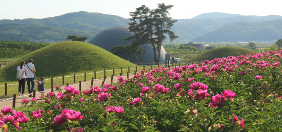 편안한 잠자리에 온천욕으로 더 개운해진 몸으로 새아침해장국의성마늘13호점을 찾아 가볍게 해장을 하고, 의성 마늘 테마 파크에 잠시 들렸다가 의성조문국사적지를 찾았다. 사람 이름이 아니고 나라 이름인 조문국은 약 2,000여 년 전 금성면 대리리, 학미리, 탑리리 일대에 존재했던 고대국가로 21대 왕 369년 동안 왕조를 유지했는데, 조문국사적지에는 200여기의 고분군과 경덕왕릉, 고분전시관 등과 작약꽃이 만발하는 5월이면 고분군과 조화를 이루어 아름답기 그지 없다.