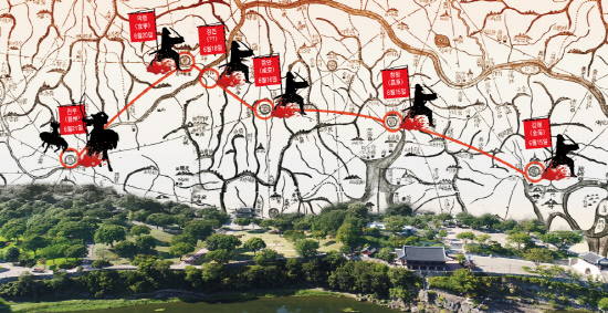 당시 일본군의 진격로는 어떠했을까. 지승종 경상대학교 사회학과 교수가 펴낸 ‘임진왜란의 전략적 요충지, 진주성 전투’라는 저서에서는 일본군의 이동경로가 지난 1차 전투 당시와는 사뭇 달랐다고 했다.
