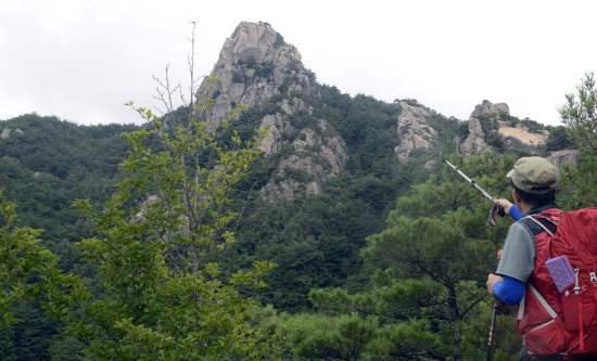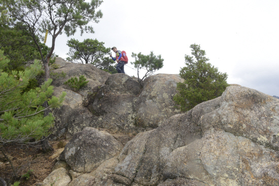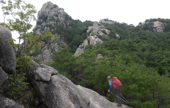 아쉬움을 뒤로하고 능선타기를 이어간다. 거대한 암봉이 연이어 시야에 들어온다. 실제 우두산의 숨은 비경이 장군봉이라 할 만큼 아름다움의 연속이다.