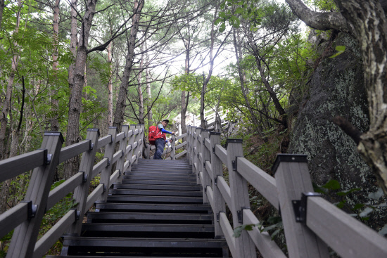 굴곡진 등성이를 두세개 넘어서면 길은 오히려 고도를 낮춘다. 곳곳에 안내 이정표가 설치돼 있어 길을 잃을 염려는 없다.