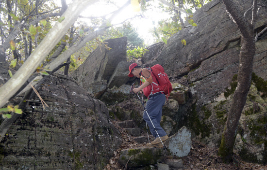 이 산의 진면목을 볼수 있는 곳은 정상에서 20m 돌아서 내려온 지점이다. 등산로에서 약간 벗어난 곳으로 그냥 지나치지 말고 다가가보길 권한다.