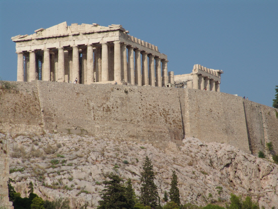 아테네 시내에는 눈에 띄는 두세 개의 언덕이 있다. 그 언덕중 가장 높은 곳을 바로, 아크로폴리스 라고 부르는데, 그리스어로 ‘높다’라는 뜻을 가진 아크로와 도시국가 폴리스를 합쳐 부르는 이름이다. 그 언덕중 고대 아테네인의 유적지가 밀집해 있는 곳의 아크로폴리스가 가장 대표적이다. 아크로폴리스는 고대 그리스 곳곳에 세워졌는데 고대 그리스 도시의 방어용 요새이자 군사적 요충지의 역할을 했다.