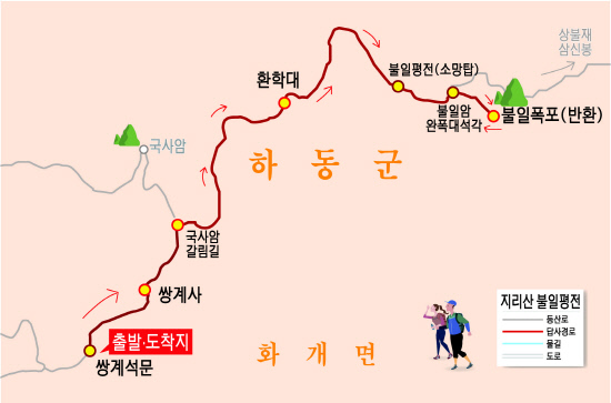 산 아래 고찰 쌍계사 대웅전 앞마당에 세워져 있는 국보 47호 ‘진감선사 대공탑비’가 그의 작품이고 쌍계사 입구 ‘쌍계석문’이 그의 글씨라고 하니, 고운의 불일평전·불일폭포 행차는 기정사실화하는 분위기다.