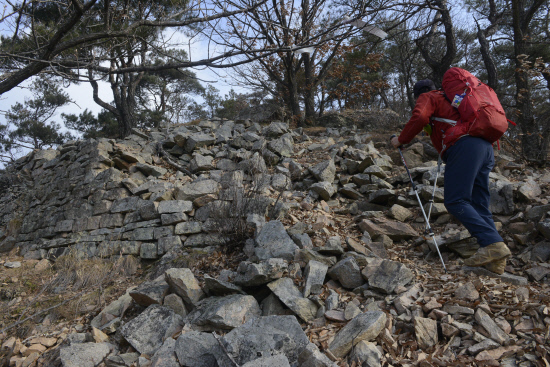 이후 급하게 경사진 갈지자 형태의 길이 산행을 어렵게 한다. 낙엽과 성근돌이 혼재해 미끄럽다. 조심해야 할 길이다. 거슬러 올라온다면 결코 쉽지 않을 길이다.