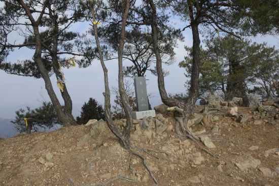 정상은 수 십명이 앉아 휴식할 수 있을 정도의 공간이다. 산행 들머리에 있던 이정석과는 달리 비석처럼 생긴 흔한 정상석은 금강을 바라보고 있다. 금강과 제원면 일대에는 풍요로움의 상징인 드넓은 평야가 펼쳐져 있다.