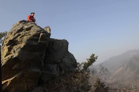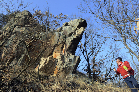 산성을 떠나 돌 틈에서 힘겹게 자라고 있는 소나무 사이를 지나면 어느 순간 자연전망대가 나타난다. 왼쪽에 ‘하늘을 우러러 보는 형상’이라는 천앙봉이 피라미드처럼 곧추 섰고 그 아래 금강의 샛강이 흘러간다. 그 강을 따라 약간의 민가가 형성돼 있다.
