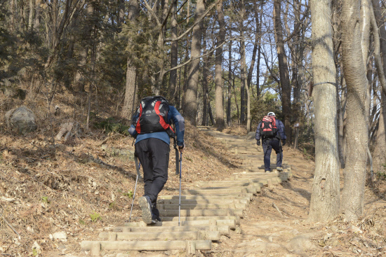 등산안내판을 시작으로 완만한 오름길에 접어들면서 호흡이 가빠진다. 마주치는 중년의 산행객은 일행을 위 아래로 훑어 봤다. ‘동네 뒷산에 가면서 웬 배낭이냐’는 표정이다.