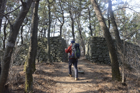 다시 솔숲을 지나고 데크로 만든 등산로를 따라 올라간다. 정상 부근에 다달았을 때 봉수꾼 막사가 먼저 기다리고 있다. 봉수꾼의 세간살이가 이채롭다. 봉수막사 앞에 ‘사랑이 이루어지는 나무’라는 소나무는 하트처럼 생겼다.