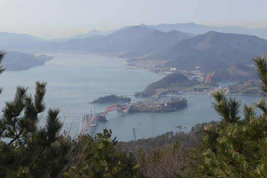 여기에 우리나라에서 가장 아름다운 길 중에 하나로 꼽히는 창선·삼천포대교와 짙푸른 바다가 어우러져 한 폭의 그림을 만들어낸다.