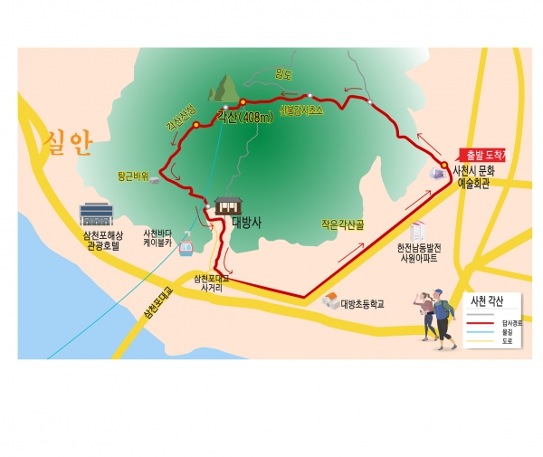정상에서 만난 어르신들은 하나같이 즐겁고 기쁜 표정들이다. 취재팀은 사천 시내인 사천시문화예술회관 옆 주차장에서 출발해 약수터를 거쳐 각산에 올랐다.
