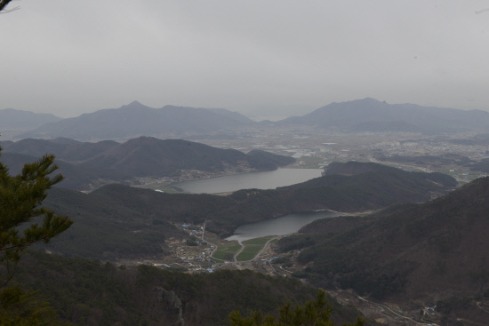 거류산과 구절산 벽방산이 가깝게 보인다. 한국의 마테호른 거류산(571m)과 들국화가 많이 자생하는 구절산(559m)이 더 유명세를 타고 있지만 실상 산 높이는 천왕산이다.