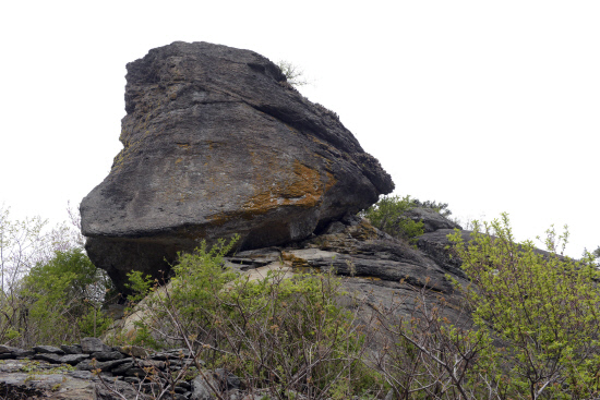 출발 30여분 만에 눈 위에 거대한 기암이 보인다. 투구바위라는 이름을 가졌다. 어찌 보면 대항해를 앞둔 배가 돛을 높이 올린 형상이다. 푸른하늘과 어울려 더욱 실감이 난다. 황매산 모산재 돛대바위를 닮았다.