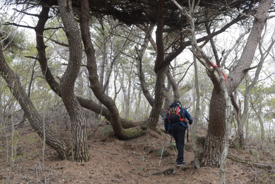 드넓은 암반을 벗어나면 길은 소나무 숲속으로 꼬리를 감춘다.