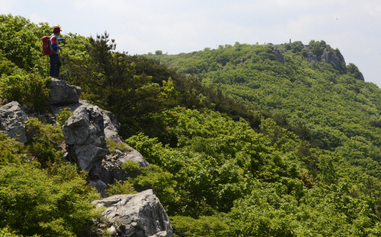 산을 찾은 날은 안개와 미세먼지가 없는데다 찬란한 녹색의 숲이 융단처럼 깔려 싱그러움을 느끼면서 산행을 할 수 있었다.