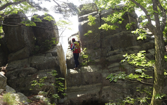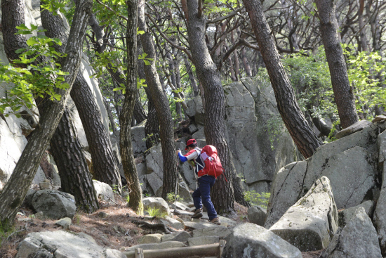 등산로는 아름답다. 조경수처럼 생긴 아름드리 소나무가 빽빽하고 그 사이로 하얀 화강암과 암괴류가 군데군데 위치해 있다. 급경사 오름길의 숨 가쁨과 목마름을 상쇄하는 자연물이다.