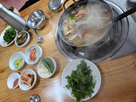 닭국을 잘하는 곳은 여러 곳이죠. 맑은 닭국이라고 해서 닭을 잘게 토막 내 무를 삐져 간편하게 끓인 닭국 말이죠. 여긴 버섯과 대파 그리고 무를 잘 삐져 끓인 오리탕이 압권이죠. 국물이 정말 시원하거든요. 술국으로 생각해도 될 정도지요. 뜨거운 국물을 먹으며 ‘아! 시원하다’라고 하는 사람은 한국 사람밖에는 없을 거예요.