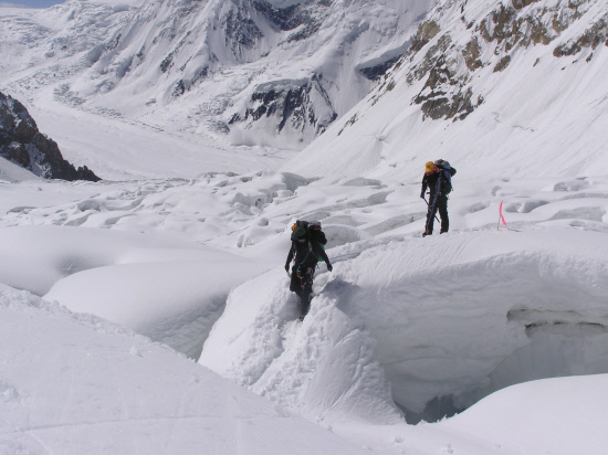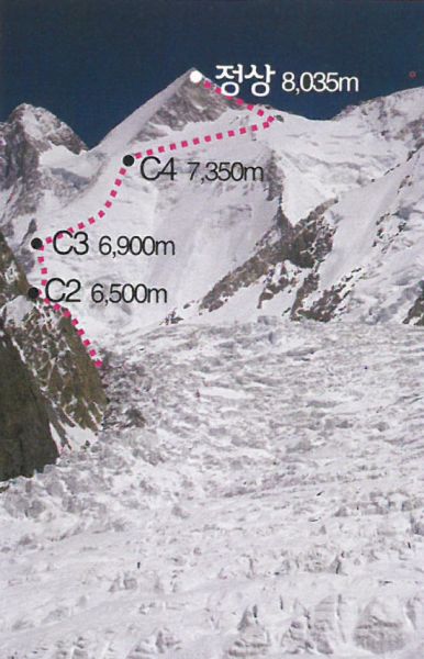 가셔브롬1·2봉 등정은 BC에서 출발한 후 곧바로 나타나는 아이스 폴(얼음폭포) 지대에 펼쳐져 있는 크레바스를 어떻게 통과하느냐가 가장 큰 열쇠다. 하지만 각국 원정대는 너무 힘든 코스라 선뜻 나서지 않고 눈치만 살피고 있었다.