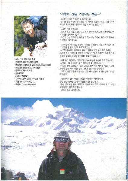 경남산악연맹은 이번 등반에서 시즌 한국 초등을 이뤘다. 또 1975년 프랑스 원정대가 초등한 남릉을 한국에서 처음으로 올랐다. 1988년 이후 16년 만에 이 루트를 두 번째로 등정하는 등 풍성한 기록을 남겼다.