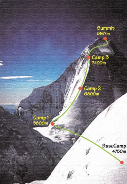눕체, 낭가파르바트, 안나푸르나1봉 남벽, 에베레스트 남서벽, 가셔브롬4봉의 등정에 이어 다울라기리봉을 등정하려 합니다.
