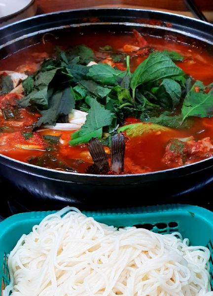 커다란 냄비에 발갛게 끓는 국물 위로 방아잎이 올려져 있다. 서울 사람들은 방아잎에 오금을 떤다. 나도 처음엔 그랬다. 방아잎과 제피가루. 그건 입을 아리게 하고 비릿한 향이 도저히 먹을 수가 없었다. 김치니 무침이니 안 들어간 게 없었다. 추어탕이니 어탕 등에는 당연히 들어가니 긴 세월 입에 익어서 지금은 좋다. 그렇지만 처음 맛보는 사람들은 혀를 내두를 수가 있다. 혹시 그런 게 익숙하지 않으면 미리 방아잎과 제피가루를 빼달라고 하면 된다.