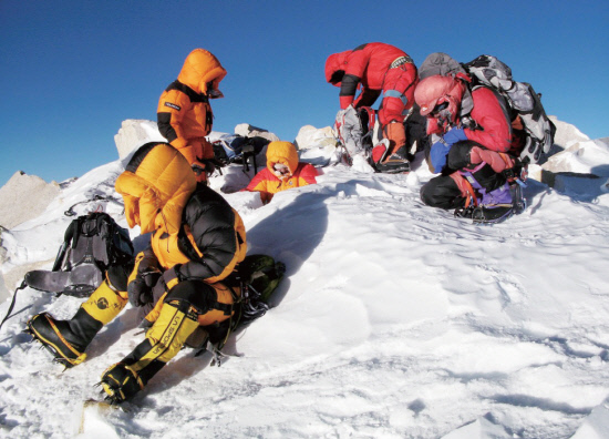 4월 23일 오전 7시 7400m에 도착했다. 대원들은 고민에 빠졌다. ‘하산해서 다시 오르느냐 아니면 그냥 정상으로 가느냐?’