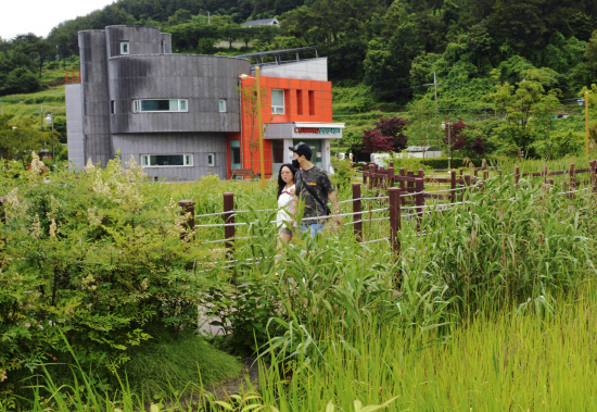 ▲남해바래길 탐방안내센터에서 나와 연꽃테마공원 사이를 지나 돌아 나간다. 키가 훌쩍 커버린 갈대숲이 연못을 뒤덮고 있다. 고라니인지 수달인지 모를 큰 짐승이 인기척에 놀라 뛰어 달아났다. 실상 외려 더 놀란 건 취재팀이었다.