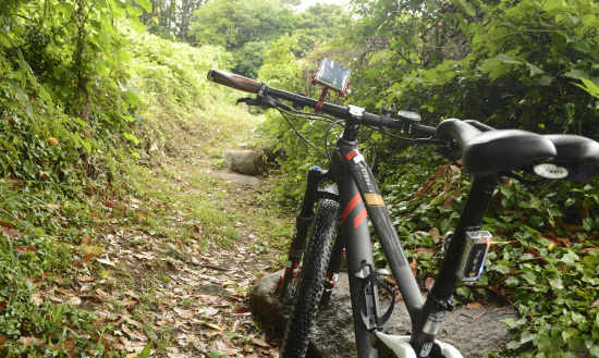 잠깐이면 자전거길이 나올 것이라는 기대는 깨졌다. 산악용 자전거임에도 자전거를 탈수 있는 구간은 절대적으로 없었다. 10분, 20분, 30분이 지나도 길은 계속 산길이었다. 안개까지 내려앉은 후텁지근한 날씨에 포털 GPS도 오작동을 일으켰다. 걷고 있는 길 외에 자전거 통행이 가능한 임도가 있다는 착각을 일으키는 바람에 길을 한참동안 벗어났다가 되돌아와야 했다.