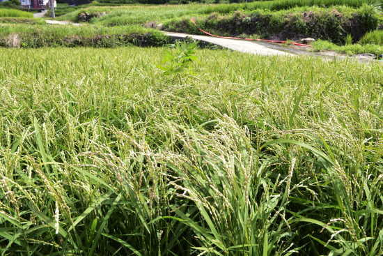 출발 1시간 만에 꽃내중학교 옆 논길을 따라간다. 참새가 덜 여문 벼이삭을 쪼아 먹어버린 탓에 벼가 병충해 입은 것처럼 허옇게 변해버렸다. 한해 농사를 망쳐버린 농업인의 타들어가는 심정을 녀석들은 아는지 모르는지, 야속하고 안타깝기가 그지없다.