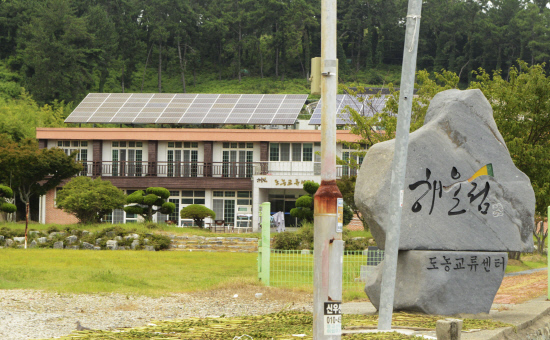 장포항을 지나 대곡마을, 폐교된 학교는 진동초등학교이다. 지금은 ‘해울림’이라는 도농교류센터로 바뀌어 있다. 아담했던 초등학교 건물을 리모델링해 학교형태가 많이 변했다. 타 지역의 폐교는 대부분 방치되는 것과는 달리 그나마 남해지역은 폐교를 예술인들의 창작공간으로 만들거나 청년들의 창업공간, 카페 등으로 탈바꿈한 것이 특징이다. 진동초등학교 터 교적비가 과거 초등학교였음을 알려줄 뿐이다. 73년 전인 1949년 12월 15일 개교 후 졸업생 1243명을 배출한 뒤 1994년 3월 폐교했다. 말발굽길 기점 적량해비치마을에는 보건소와 식당이 들어서 있고 해안에는 요트 계류장이다.
