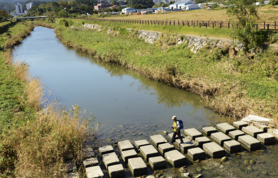 데크탐방로와 징검다리를 건너서 강둑을 걸어 남해읍으로 들어간다. 남해읍을 품은 망운산이 새롭게 보인다. 남해의 진산으로 여름철 바다에서 형성된 구름이 산자락에 걸리는 경우가 많아 ‘구름을 기다린다’는 뜻에서 망운산이라고 불렀다 한다. 2018년 망운산 스카이라인에 풍력발전소를 건립하려는 움직임이 있었다. 의령의 자굴산처럼 바닷바람이 센 남해의 바람을 활용하려는 의도였지만 산림훼손 환경 생태계 파괴, 저주파 발생을 우려한 풍력발전 반대 범국민대책위원회와 산악회의 극심한 반대에 부딪쳐 무산됐다. 남해읍으로 들어가는 바래길, 뒤에 산이 구름을 기다린다는 망운산이다. 남해유배문학관