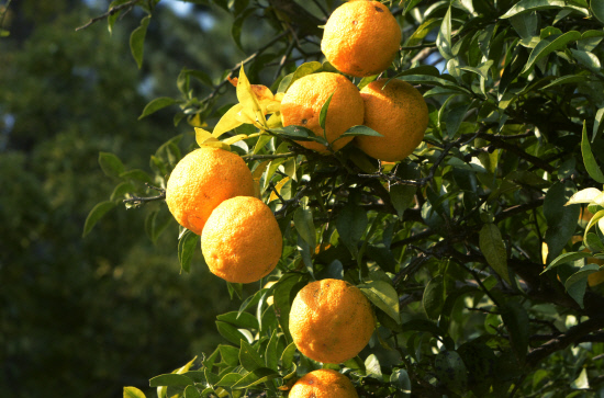 ▲설천면 행정복지센터 앞에서 출발한다. 설천중학교와 설천보건지소를 지나 오른쪽으로 꺾어 산으로 올라간다. 길가 언덕 깊어가는 가을 남해 명물 유자가 어느새 특유의 노란 빛을 내고 있다. 옛날에는 향기와 빛깔이 좋아 남국의 과일, 대학나무 등으로 불리며 귀한 대접을 받았으나 요즘에는 흔해져 수확도 안하고 나무에 달린 채 말라가기도 한다. 남해유자